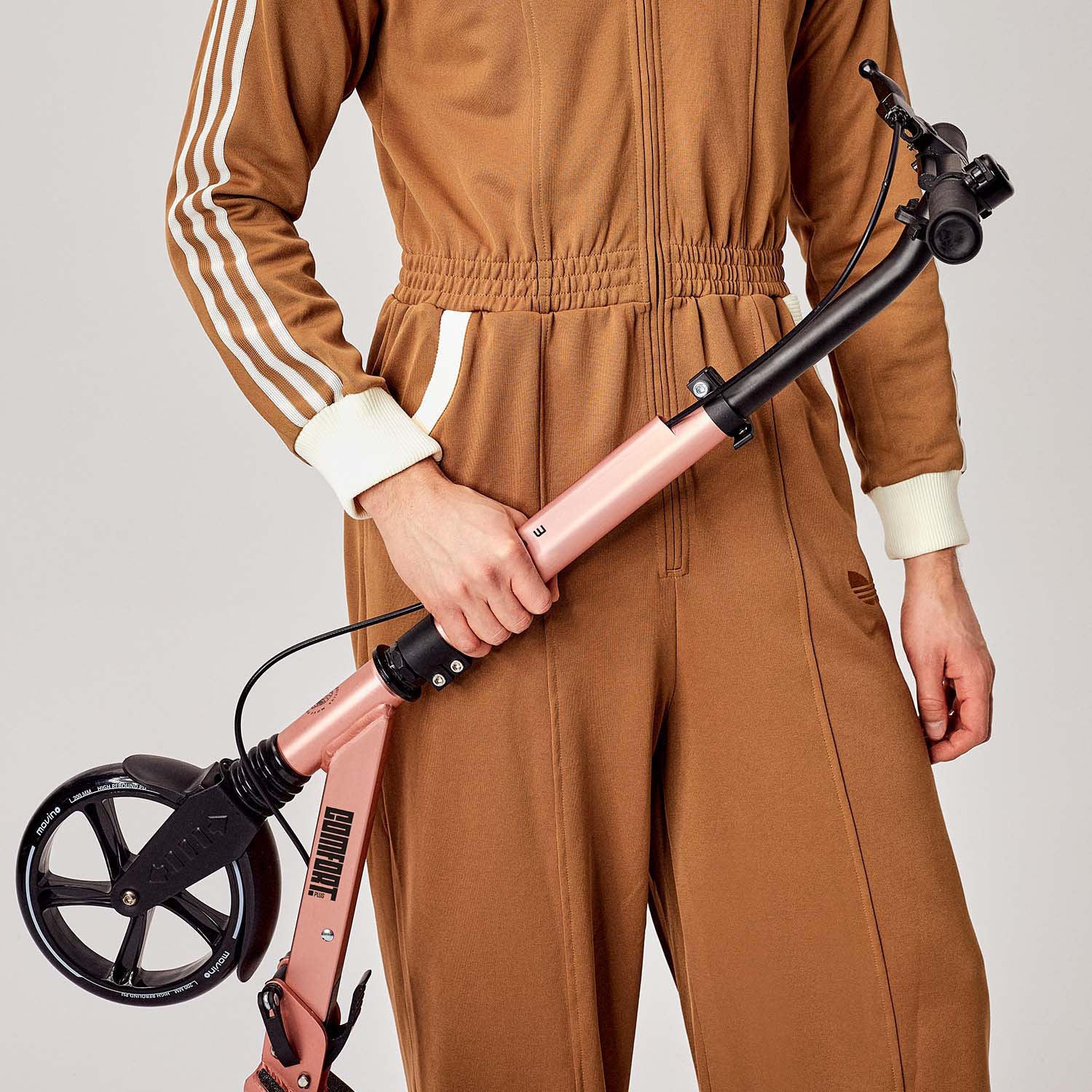 Movino Comfort + este o trotineta urbană elegantă, disponibilă în trei culori metalice neobișnuite și finisaje satinate: roz prăfuit, albastru clasic ș verdei mentă.