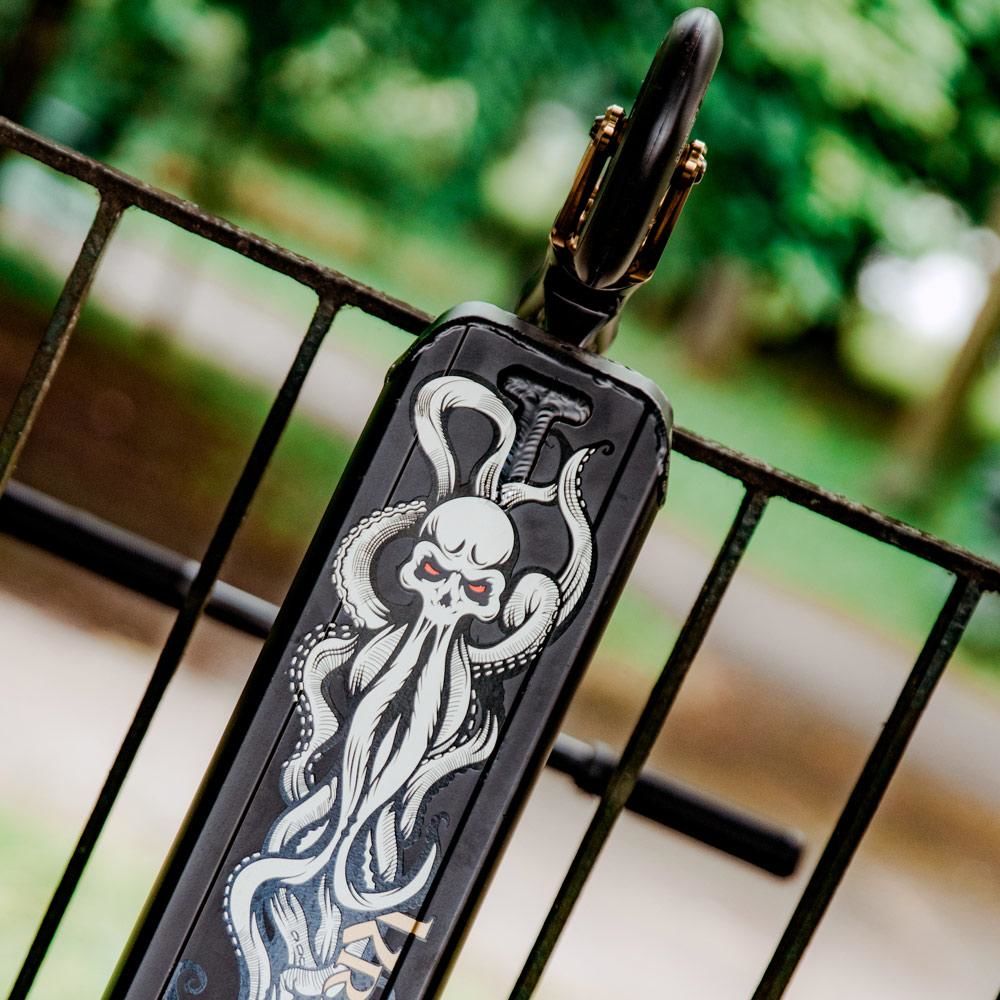 Când îi întrebăm pe riderii noștri ce le place cel mai mult la Kraken – toți indică fără echivoc deck-ul. Dimensiunile de 52 cm x 12,5 cm oferă stabilitate în timpul celor mai avansate trick-uri! Deși deck-ul Krakena are un finisaj box-cut, specific trotinetelor de stradă, este adesea ales de rideri pentru skatepark. O bestie versatilă!