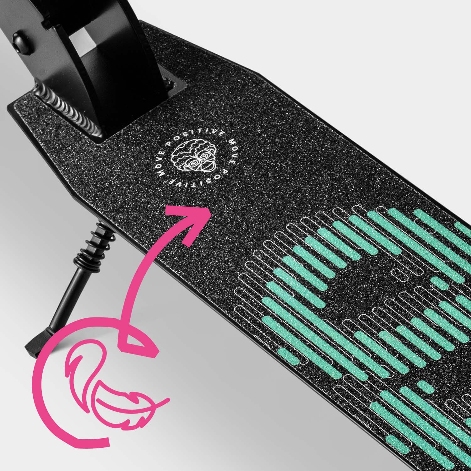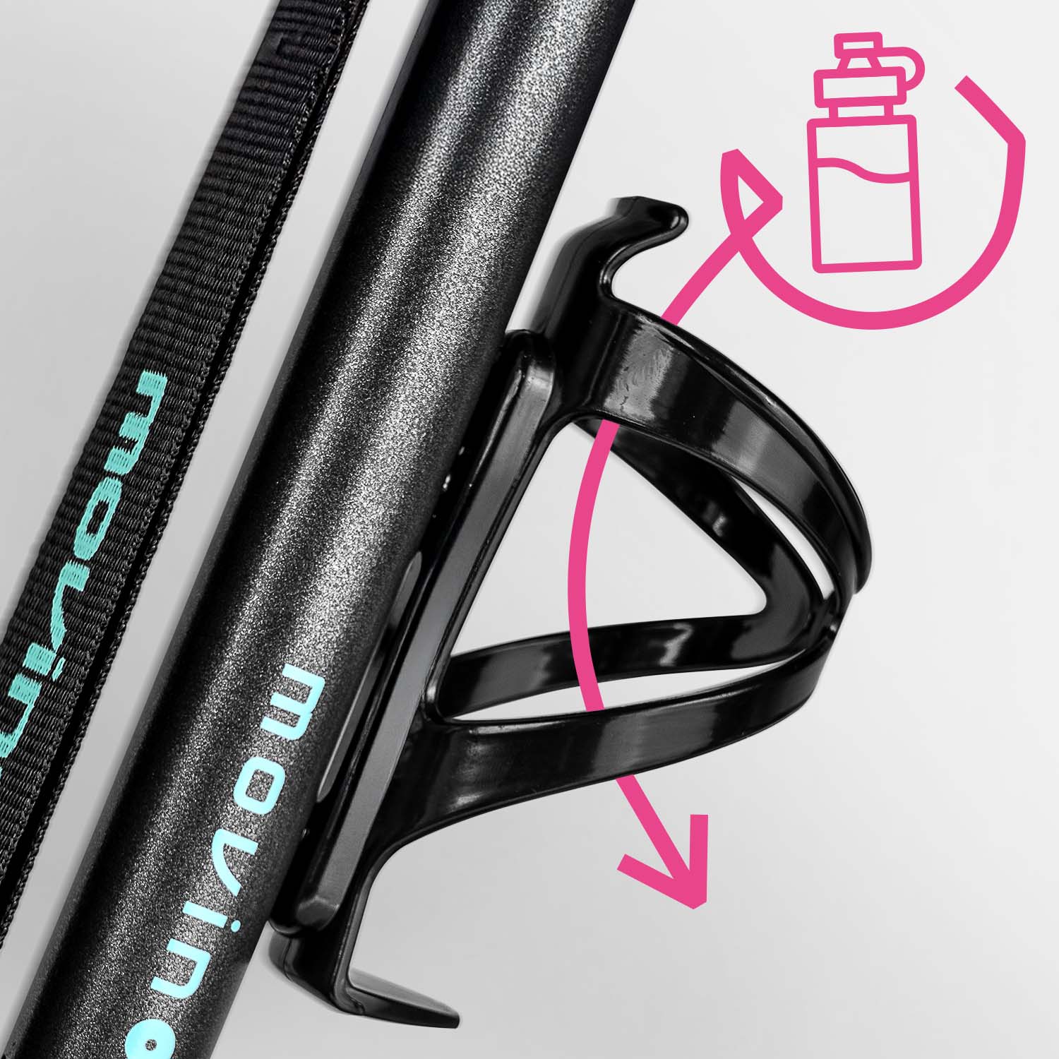 Deplasându-te pe trotineta Infinity vei avea mereu la îndemână o sticlă de apă cu băutura ta preferată. Suportul inteligent pentru sticla de pe coloana de direcție este foarte comod. Și nu numai! Movino Infinity are și o curea practică pentru transportare. Nu poți ajunge peste tot cu trotineta, uneori trebuie să o muți. Poti atarna trotineta Infinity peste umar ca pe o geanta. Greutatea redusă a modelului - doar 3,50 kg - și cureaua reglabilă îți va simplifica această sarcină.